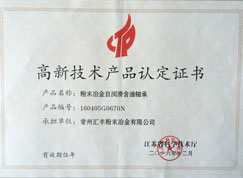 高新技术产品认定证书(粉末冶金自润滑含油轴承)、ISO证书等多种证书。